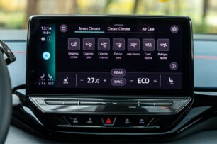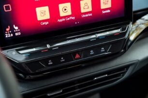 Prácticamente todas las funcionalidades las asume la pantalla a todo color de 12 pulgadas. Es táctil, con sensores de proximidad y control gestual. Las funciones esenciales del climatizador trizona y los ajustes de volumen se han dejado fuera. Quedan junto con otras funciones básicas que se agrupan en torno al botón de los “warning”.