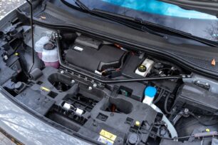 También podemos recargarlo durante la marcha gracias a la frenada regenerativa, que nos ayuda a sumar unos pocos kilómetros extra en cada deceleración. En este proceso, el motor eléctrico asume el papel de un generador eléctrico y, nosotros, como conductores, podemos regular la potencia de recuperación con el selector de marcha.