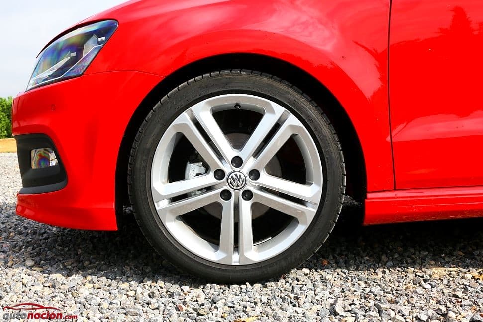 Visto de lado, el Polo no ha cambiado en absoluto, aunque lo que sí que ha cambiado ha sido su catálogo de llantas de aleación y como no, en el R-Line contamos con unos faldones laterales. Aunque el Polo en acabado Sport equipa llantas de aleación de 15” de serie, nuestra unidad montaba de forma opcional unas recomendables llantas de aleación de 5 brazos dobles y 17 pulgadas que montaban unos neumáticos Bridgestone Potenza RE050A en dimensiones 215/40 R17 87V.