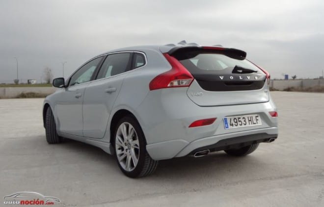 La parte trasera, aunque nueva, nos recuerda a otros modelos de la marca Sueca. Un porte musculoso y un portón trasero en el que predomina el cristal hacen que el modelo nos recuerde al C30. Por otro lado, los faros se han estilizado pero las líneas de los mismos son ya muy conocidas en la marca.