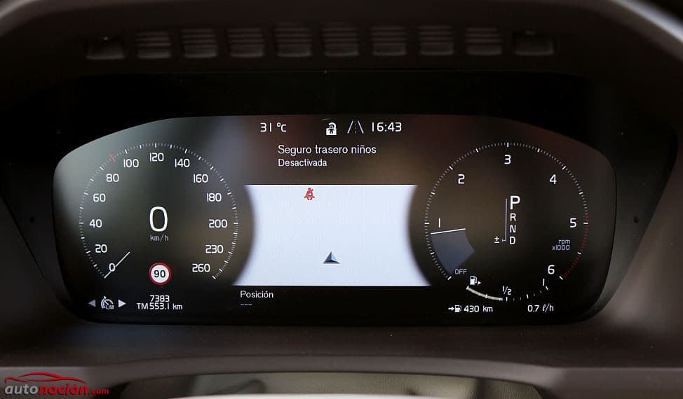 Las manos se posaban cómodamente sobre un volante de cuero que opcionalmente puede esta tapizado en dos colores diferentes. El volante multifunción contaba con una superficie en negro brillante con 14 botones que nos daban acceso a diversas funciones del vehículo como el ordenador de viaje o el control de crucero. Tras el volante nos topamos con un cuadro de instrumentos 100% digital fruto de la incorporación de una pantalla de 12,3” a todo color (la que viene de serie es de 8”) que ofrecía diferentes vistas entre la que encontramos la clásica de los diales, el mapa del sistema de navegación, el ordenador de viaje, la configuración de algunos asistentes y su estado.