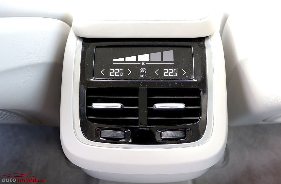 En el habitáculo todos los pasajeros disfrutarán de un clima interior agradable y fresco. El nuevo Volvo XC90 se puede especificar con un sistema climátización de cuatro zonas con ajustes individuales para los ocupantes de los asientos delanteros y para los de la segunda fila que contarán con una pantalla táctil para ajustar el sistema. La unidad independiente de aire acondicionado para la tercera fila es de serie u opcional en función del mercado.