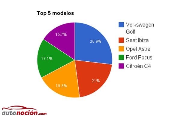 De los cinco modelos con más ventas en el mercado de segunda mano, todos menos el Ibiza pertenecen al segmento C y su carrocería más habitual es la hatchback. Se deduce de esto que interesan sobre todo los compactos, atractivos por su precio y su versatilidad.