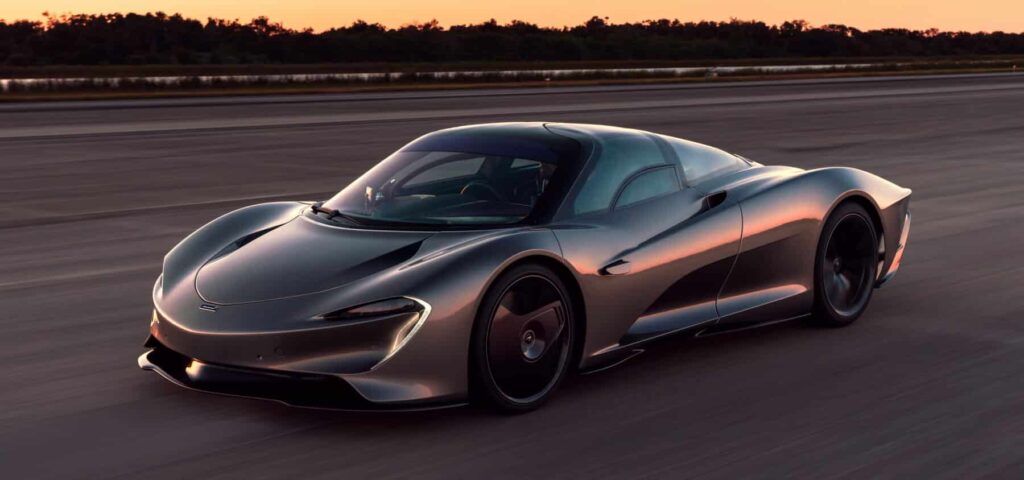 El McLaren Speedtail declara una velocidad máxima de nada menos que 403 km/h, una cifra que rompe el anterior récord interno de 386,4 km/h establecido por el icónico McLaren F1. Como ya te estarás imaginando, los principales rivales de este nuevo modelo son otros supedeportivos como el Bugatti Chiron Super Sport 300+, el Koenigsegg Regera y el Hennessey Venom F5.