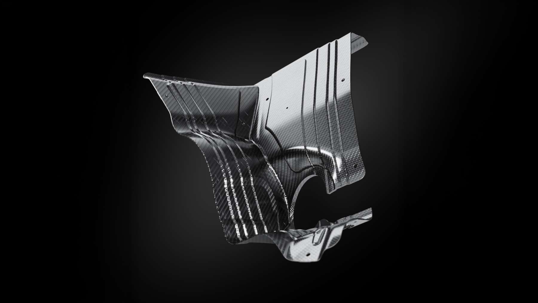 A partir de esta información, se diseñó un conjunto de 13 estructuras de fibra de carbono para reforzar dichas zonas, respetando al mismo tiempo la necesidad de preservar el chasis original Type 964.