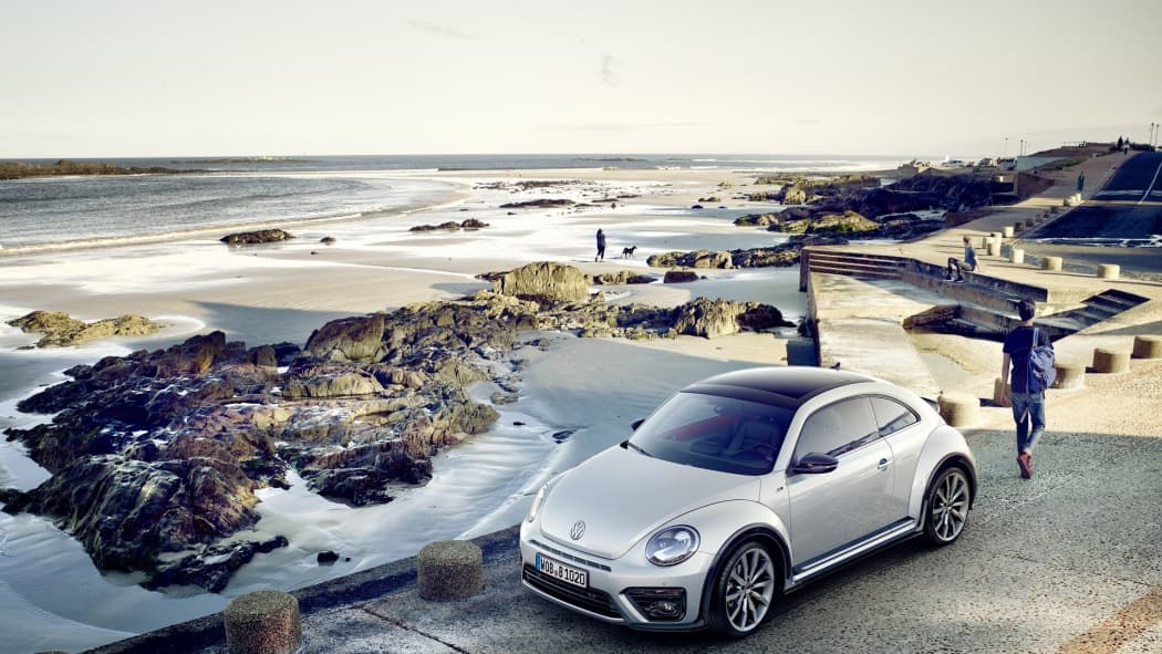 Exteriormente los Beetle R-Line incluyen paragolpes de diseño específico con detalles decorativos exclusivos, pasos de rueda en negro, llantas de aleación de 17 pulgadas diseño «Elba», espejos retrovisores pintados en negro, alerón sobre el portón posterior en dos tonos y colas de escape cromadas.