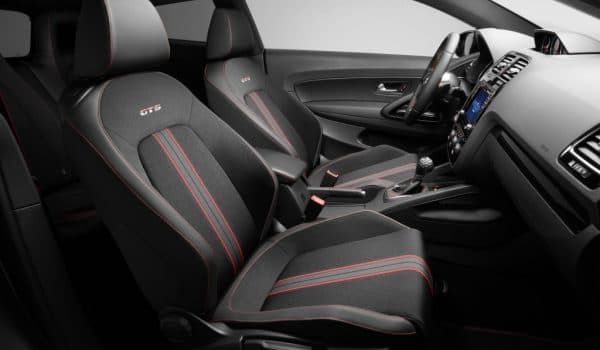 En el habitáculo lo más destacable son los pedales en acero fino, los asientos deportivos con tapizado exclusivo y el bordado GTS en el respaldo, los apliques decorativos en negro lacado, placa GTS en umbral de puertas y el ambiente interior oscuro que aumenta la sobriedad del interior.