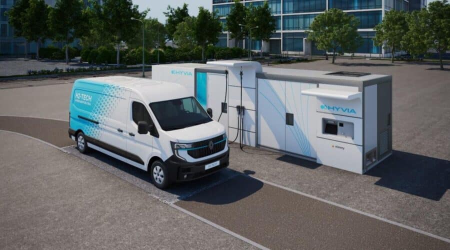 La planta de HYVIA en Flins, Francia ofrecerá una doble gama de depósitos de 7,5 o 9 kg, para satisfacer las diferentes necesidades de autonomía. Los depósitos de H2 están integrados en el chasis de la furgoneta, gracias a un diseño optimizado desarrollado en colaboración con OPmobility y FORVIA.