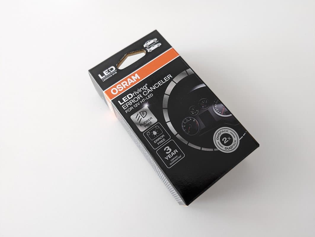 Además OSRAM nos envió lo que llaman Error Canceler. Se trata de unos dispositivos, vienen dos por caja, que nos permiten eliminar los posibles destellos aleatorios de una bombilla LED o los posibles errores que se generen en sistemas CANBUS.