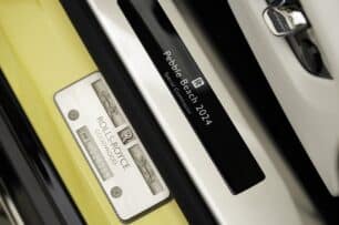 La carrocería exterior está acabada en Bespoke Semaphore Yellow, el color que da nombre a este encargo tan especial. Este tono sólido se realza aún más con una obra de arte única ubicada en el capó e inspirada en la elegancia informal de la costa de California. El gráfico, llamado «Marbled Paint Spill», es un tributo abstracto al Estado Dorado y su entorno diverso. Desde el sol del sur de California hasta las cimas plateadas de las montañas del este, los artesanos de Bespoke han hecho realidad esta inspiración.
