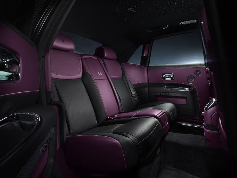 Este logotipo también va bordado sobre la tapicería del Black Badge, pues el cuero negro combina con los colores vivos Tailored Purple en el Ghost Black Badge y Cobalto Blue en el Wraith Black Badge para lograr un tacto más audaz en el habitáculo.