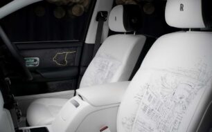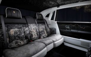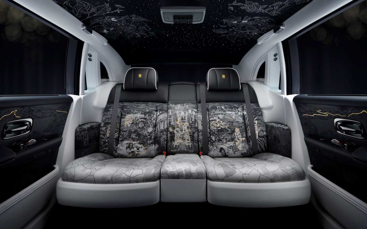Inspirados en el legendario “Phantom of Love” de 1926, los asientos traseros integran tejidos de alta resolución desarrollados junto a un atelier de moda, combinando impresión digital y más de 160,000 puntadas de bordado artesanal. Cada panel fue ajustado con precisión milimétrica, evocando las técnicas de sastrería de Savile Row.