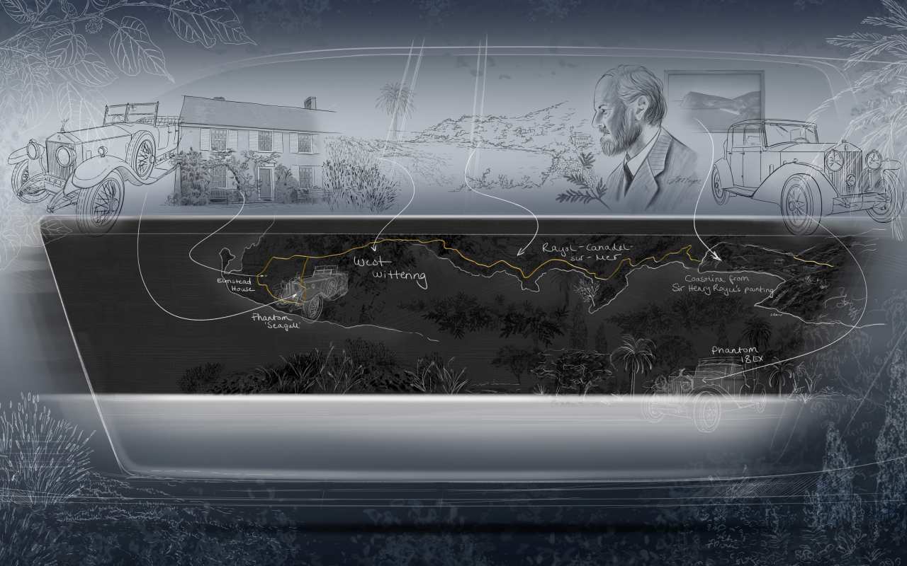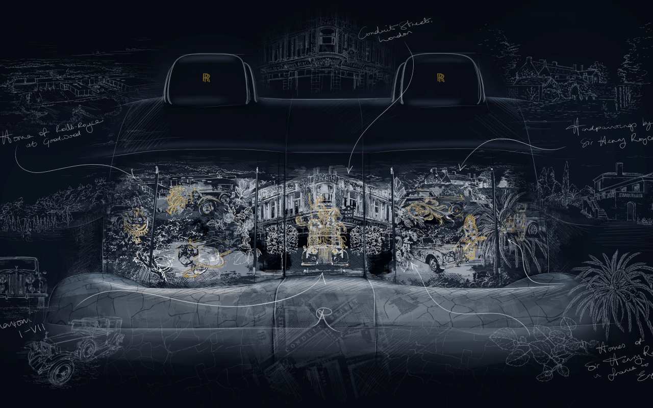 El techo Starlight bordado con 440.000 puntadas recrea escenas icónicas de la historia de la marca: desde Henry Royce bajo su morera en West Wittering hasta las abejas del apiario de Rolls-Royce y la Phantom Rose, flor cultivada exclusivamente en Goodwood. Cada constelación rinde tributo a momentos, modelos y personajes clave en la evolución del Phantom.