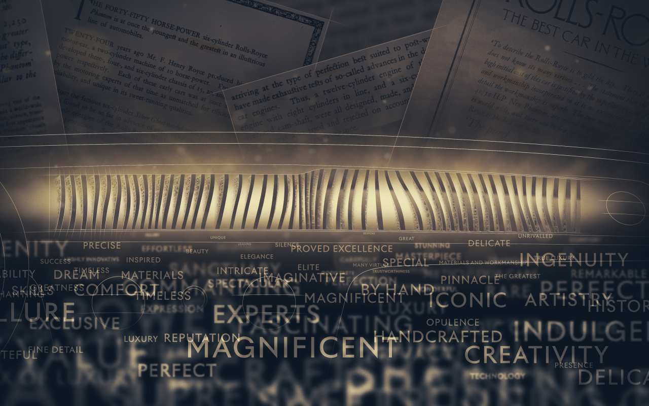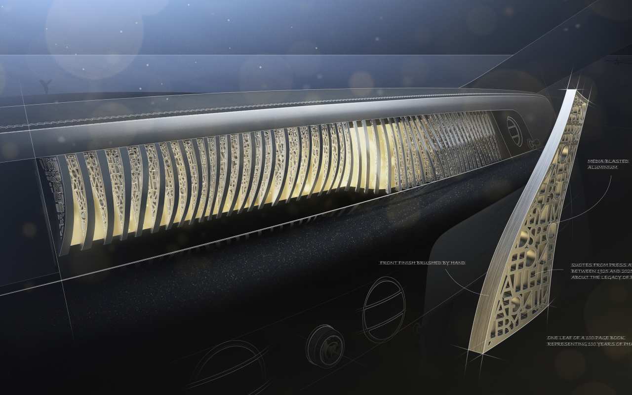 En el centro del habitáculo, la Anthology Gallery presenta 50 láminas de aluminio cepillado en 3D, dispuestas como páginas de un libro. Cada lámina incluye fragmentos de texto y citas de prensa que recorren un siglo de reconocimientos al Phantom. Su iluminación dinámica reproduce el brillo de los fuegos artificiales, generando una atmósfera de contemplación y sofisticación.