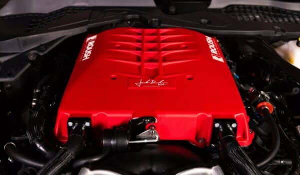 No hay muchos detalles sobre las mejoras realizada en el Mustang GT, pero el especialista nos habla de un sobrealimentador «basado en un Eaton TVS R2650 invertido con una entrada frontal, intercoolers dobles y una polea de 84 mm, que genera un impulso máximo de 13 psi a 7500 rpm«. El paquete también suma una bomba de intercooler Bosch PCE y un intercambiador de calor grande.