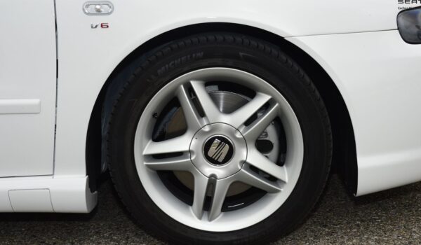 El SEAT León Cupra 4 V6 Mk1 2.8 204 CV podía distinguirse del resto gracias a sus musculosos paragolpes delantero -con tres entradas de aire- y trasero con un diseño exclusivo y una parrilla específica en panal de abeja. El modelo equipaba unas taloneras que rebajaban la altura de forma visual y ayudaba a integrar aún más las llantas de aleación de 17″ con neumáticos en dimensiones 225/45 R17. Las llantas de aleación dejaban ver parcialmente un sistema de frenos compuesto por discos de frenos ventilados con 312 mm de diámetro en el eje delantero y discos de frenos ventilados traseros con un diámetro de 256 mm -este sistema a menudo resultaba criticado al ser el mismo que de otros modelos de menores prestaciones-.