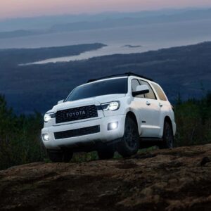 – La larga lista de equipamiento de serie del Sequoia TRD Pro incluye Smart Key con botón de arranque; Asiento eléctrico del conductor de 8 vías; techo corredizo eléctrico inclinable / deslizable, y control de clima automático de tres zonas con controles separados para el asiento trasero. También hay un sistema de entretenimiento premium con una pantalla de alta resolución, Android Auto, Apple CarPlay, Amazon Alexa, SirusXM, radio satélite, puertos USB y manos libres Bluetooth.