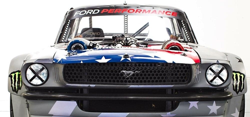 Seguramente muchos recordaréis el Ford Mustang de 1965 que Block utilizó en la Gymkhana 7. Este siempre ha sido considerado como uno de los vehículos personalizados más icónicos de la última década, pero justo cuando todos creíamos que no se podía mejorar lo inmejorable, llegan Ken Block y Hoonigan con nuevas sorpresas para el Ford Mustang Hoonicorn RTR: nada menos que una nueva decoración exterior, dos turbos desproporcionados y la adición de metanol al conjunto.