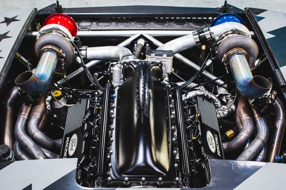 Para que os situéis en cifras, debéis saber que la versión original de este Mustang del ’65 era capaz de entregar 845 CV de potencia con tracción a las cuatro ruedas, pero gracias a su nuevo bloque V8 biturbo de 6.7 litros alimentado por metanol, esta «Versión II» del deportivo poco menos que dobla esta brillante cifra, situando la potencia total en unos más que aceptables 1.400 caballos. Sí, es cierto que parece el jovencito Frankenstein de la automoción, pero ojito con la criatura.