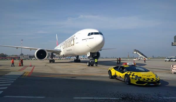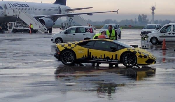 Hoy os hablo de un peculiar Lamborghini Huracan, el nuevo vehículo ‘Follow Me’ del aeropuerto de Bolonia, localizado a tan solo 25 kilómetros de la fábrica de la marca italiana en Sant ‘ Agata Bolognese. No sé si conseguirán vender muchas unidades gracias a la cesión, la cuál durará hasta enero de 2017, pero desde luego alguna visita al Lamborghini Museum seguro que consiguen.