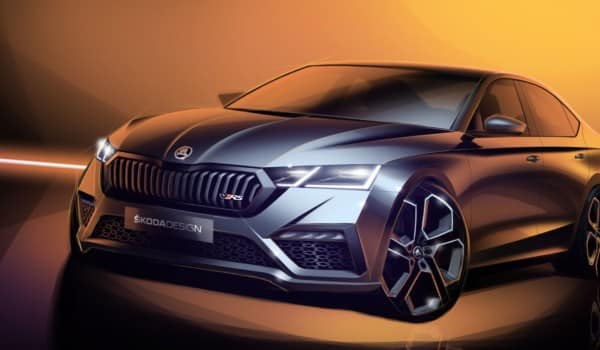 Los bocetos de diseño revelan el Octavia RS iV en formato berlina así como una versión COMBI familiar. Los elementos de diseño más llamativos son la parrilla de color negro y el faldón deportivo delantero con grandes tomas de aire y detalles distintivos de color negro.