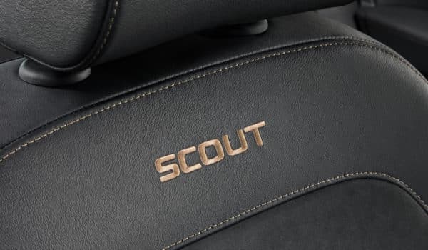 – Por dentro, el modelo da la bienvenida a los pasajeros con tiras decorativas especiales con efecto madera con el logo Scout, como en los asientos delanteros. Las tapicerías están hechas de un tejido específico con costuras decorativas. Opcionalmente, también están disponibles los asientos de Alcantara®/cuero con costuras decorativas marrones y, por primera vez, nuevos laterales de los asientos de color contrastante delante de los asientos delanteros. Los asientos delanteros calefactados vienen de serie; opcionalmente, los asientos traseros también pueden ser calefactados. La pantalla central está equipada con pantallas off-road adicionales y el conductor es recibido por un logo de bienvenida especial en la pantalla cada vez que entra en el coche.
