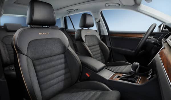 – Acorde con el estilo de los modelos familiares Scout, el nuevo Superb Scout también tiene un impactante aspecto off-road. Como ocurre en todos los nuevos Superb, la parrilla agrandada sobresale y se solapa aún más con el parachoques frontal y, como el SPORTLINE, dispone de listones dobles negros – aunque esta vez el marco es de cromo. A diferencia de otros miembros de la familia Superb, el Scout luce robustos parachoques -frontal y posterior- rediseñados, ambos con protección de bajos con efecto aluminio. Además, las tiras de plástico adicionales protegen los pasos de rueda, los umbrales laterales y la parte baja de las puertas. Los rieles del techo y los marcos de las ventanas cromados aportan mejoras al diseño. Las carcasas de los retrovisores brillan con un look de aluminoso y los alerones están decorados con placas Scout. El modelo cuenta con llantas de aleación Praga de 18 pulgadas de serie, también disponibles opcionalmente en una versión de dos tonos. Las nuevas llantas Manaslu de 19 pulgadas y dos tonos, así como el exclusivo acabado Naranja Mandarina metalizado para la carrocería, son algunas de las opciones de personalización adicionales.