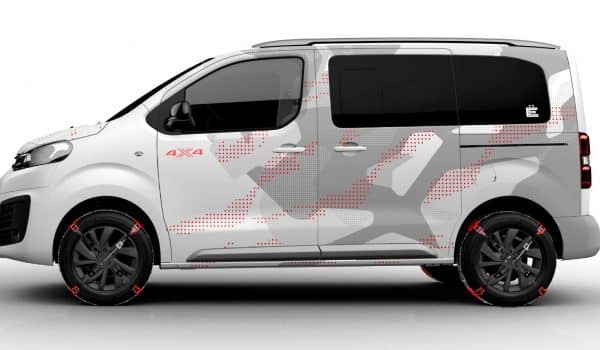 En su versión XS, el SpaceTourer 4X4 Ë Concept cuenta con tracción 4WD -la versión 4WD por Dangel permanece bajo 2 m de alto, asegurando el acceso a la mayoría de los aparcamientos- un kit de protecciones exteriores y componentes gráficos exteriores junto con un diseño interior especial que lo convierten en un auténtico aventurero.