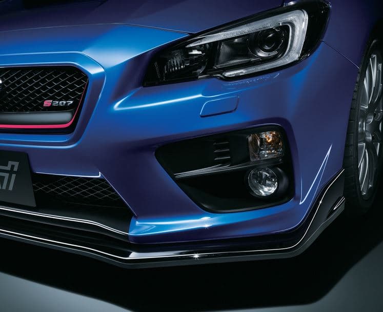 ・ Exclusive mesh-type front grille (cherry-red stripe with S207 ornament) ・ Exclusive large front under-spoiler ・ Black side garnish with STI emblem ・ Exclusive metallic side sill moldings ・ Exclusive rear bumper (cherry-red stripe with air outlet grille) ・ S207 rear ornament |