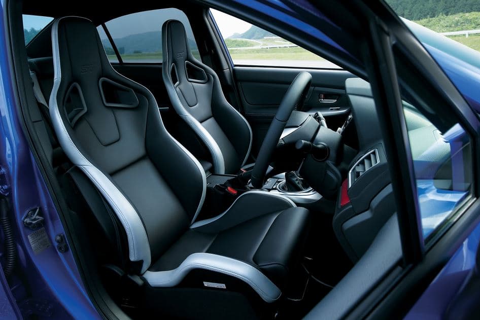 ・ Exclusive STI-spec Recaro front bucket seats (leather [black semi-aniline finish on inside of main and side panels, silver stitching and accents] embossed with STI logo and equipped with seat heating and supplemental restraint system side airbags) ・ Rear seats : black leather with silver stitching and accents ・ Exclusive instrument panel (red with S207 logo) ・ Silver stitching on door trims ・ Exclusive side sill plates (silver with S207 logo) ・ Exclusive serial-number plate (console) |