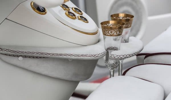 Junto a su selector de cambio automático podemos encontrar dos elegantes copas de champán, lo que nos hace preguntarnos ¿Dónde se esconderá la botella de Dom Pérignon?