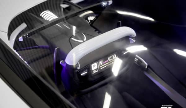 El automóvil de carreras está construido alrededor de la estructura monocasco parcialmente cubierta por una cúpula grande e hiper-transparente estilo caza, que protege al piloto y al copiloto. El dosel transparente no solo difumina los límites entre el exterior y el interior, sino que también enfatiza la posición de conducción única de estilo F1.