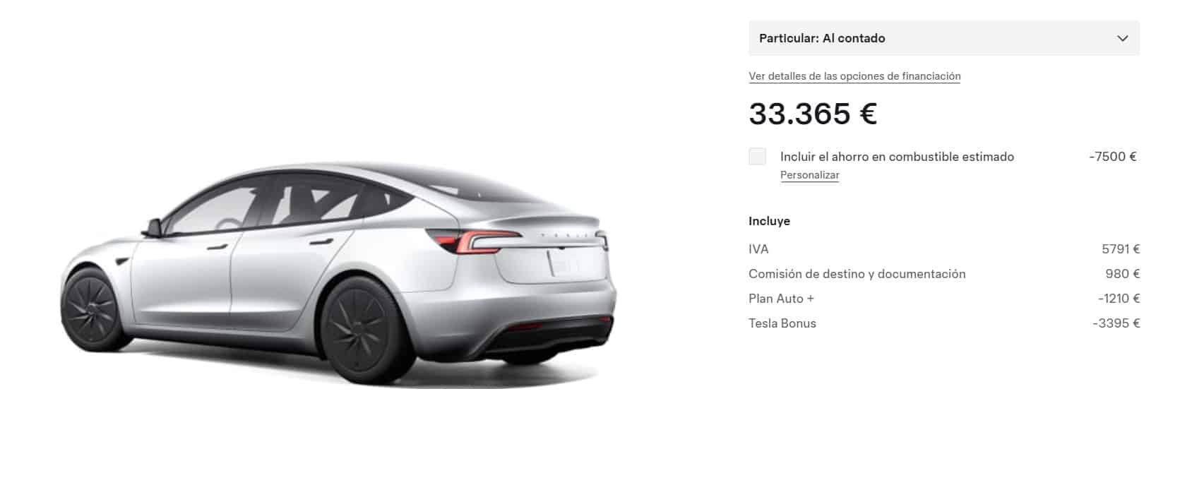 Ojo porque no hablamos de un precio “de catálogo”, es el precio final que te encuentras desde hoy mismo al configurar el coche en la web de Tesla (para pago al contado).
