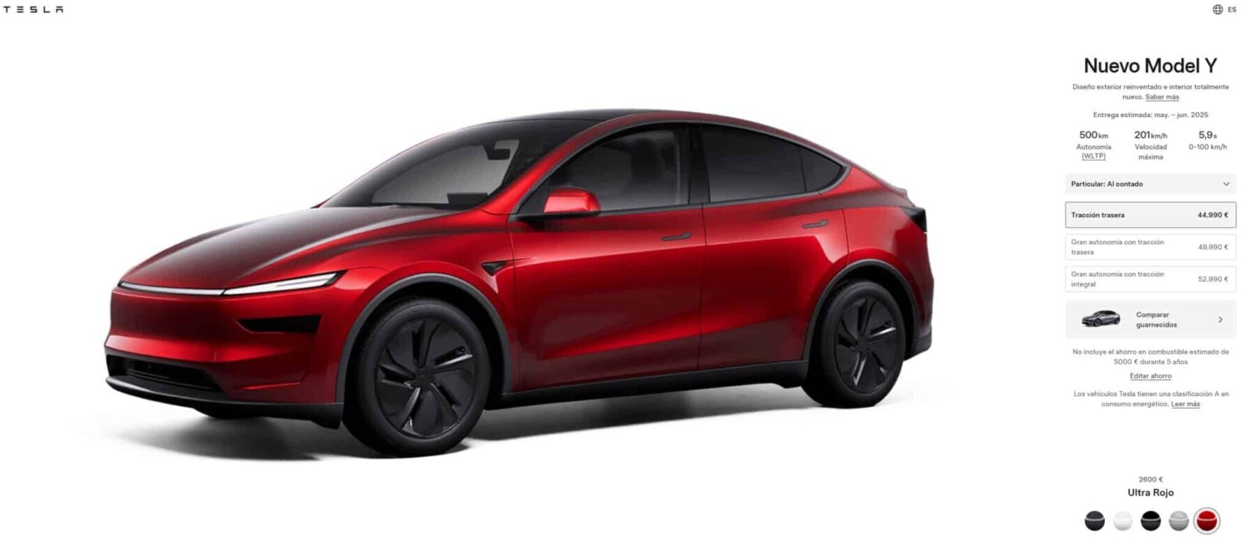 - Tesla Model Y tracción trasera: Desde 44.990 euros.