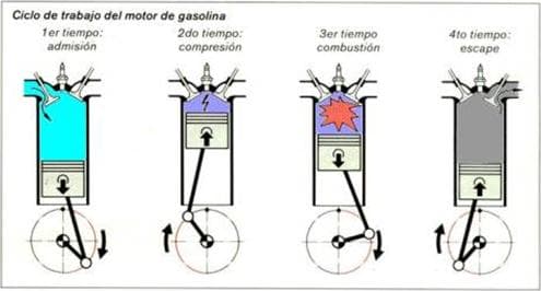 El movimiento de los pistones de la mayoría de los coches gasolina se produce en cuatro fases y se conoce como el ciclo de Otto.