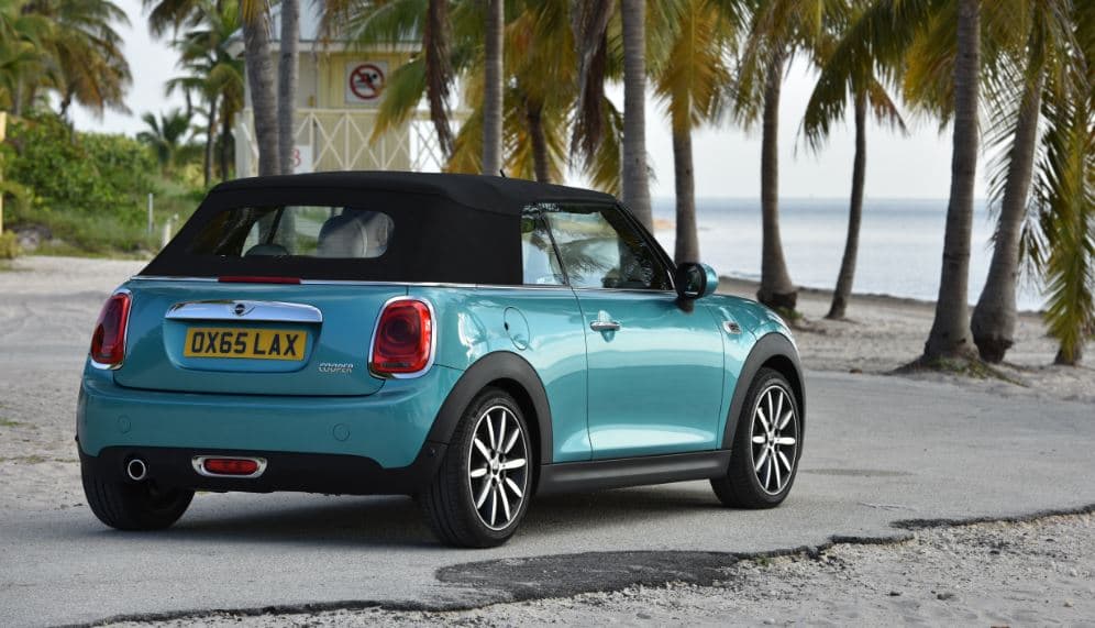 MINI Cooper Cabrio: motor de gasolina de tres cilindros con tecnología MINI TwinPower Turbo (sobrecarga turbo, inyección directa, sistema de regulación plenamente variable de las válvulas, control variable del árbol de levas). Cilindrada: 1.499 cc. Potencia: 100 kW/136 CV a 6.000 rpm. Par máximo: 220 Nm a 1.250 rpm (230 Nm con overboost). Aceleración (0–100 km/h): 8,8 segundos (con caja automática: 8,7 segundos). Velocidad máxima: 208 km/h (206 km/h). Consumo promedio*: 5,1 – 4,9 litros (5,3 – 5,1 litros)/100 kilómetros. Valor de CO2*: 118 – 114 g/km (123 – 119 g/km). Norma de gases de escape: UE6.