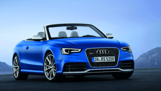 El Audi RS 5 Cabrio se lanza hasta los 100 km/h, con salida parada, en 4,9 segundos. La velocidad máxima está limitada a 250 km/h, aunque si el cliente lo desea, Audi ofrece la posibilidad de subir esta limitación hasta los 280 km/h. El poderoso V8 tiene un consumo medio de 10,9 litros de combustible a los 100 km. Las paredes de sus cilindros y la distribución de cadena han sido optimizadas para reducir la fricción al mínimo, y la bomba de aceite es regulada en función de la demanda.