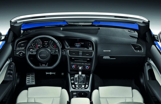 El Audi RS 5 Cabrio despega con un amplio equipamiento de serie. Cabe destacar, por ejemplo, el Audi parking system plus, el climatizador automático de confort de tres zonas, el dispositivo de acercamiento automático del cinturón, un cortavientos, el paquete de iluminación, el sistema de información al conductor con detector de fatiga y un amplio paquete de sistemas de retención. En el caso de que el vehículo amenace con volcar, detrás de los reposacabezas traseros emergen unas placas de aluminio de gran resistencia.