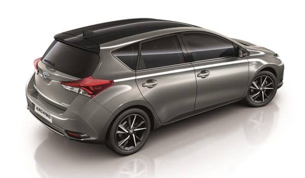 Exteriormente el Auris Bi-Tono se reconoce por el techo y los retrovisores pintados en negro, las llantas de aleación de 16 pulgadas también en negro (salvo el híbrido que lleva unas de 17 pulgadas», los cristales sobretintados tipo «privacidad», parrilla frontal negra, etc.