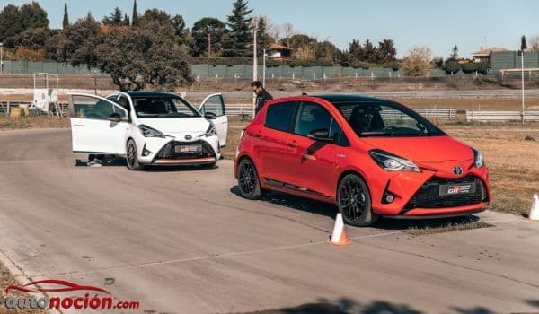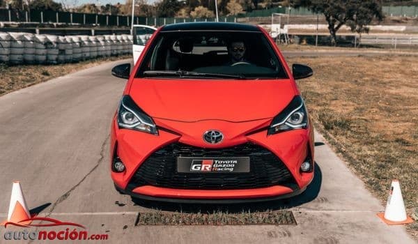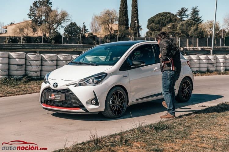Durante nuestra jornada en el Circuito del Jarama, la marca nos ha ofrecido un circuito revirado con tramos de slalom al volante del Toyota Yaris GR Sport, un modelo que sobre la base de un Toyota Yaris se presenta en el mercado con un aspecto más deportivo, una suspensión rebajada en 10 mm, una llantas de aleación deportivas negras, unos asientos deportivos y el mismo volante el Toyota GT86.