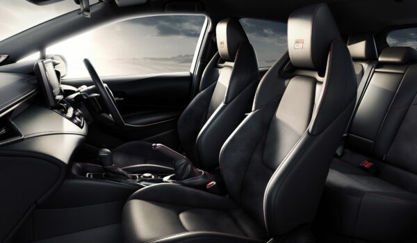 El paquete SPORT, disponible como opción realza el interior con un toque deportivo y premium que añade los asientos semi-bucket exclusivos con el logotipo GR, el volante de tres radios tapizado en Ultrasuede® con marcador central, la palanca de cambios y freno de mano con detalles en Ultrasuede® y costuras rojas y los cinturones de seguridad rojos de tres puntos con pretensores.