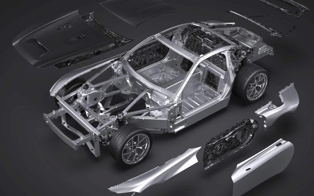 Entre sus características más destacadas se encuentra la adopción del primer chasis íntegramente de aluminio fabricado por Toyota, complementado con paneles de CFRP para lograr alta rigidez con bajo peso.