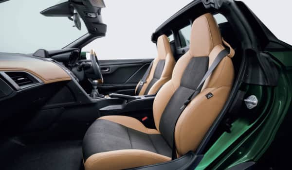 Para seguir captando la atención de los usuarios, la filial japonesa ha decidido introducir la edición especial «Trad Leather Edition» que cuenta con tapizado en tela y piel de colores crema/gris, capota de lona terminada en marrón, volante deportivo en negro/crema y una placa con el número de la edición.