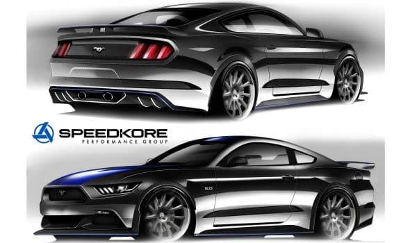 En primer lugar uno de los Mustang que más llama la atención es este Concept que todavía solo podemos ver en forma de boceto y que nos devela un kit para la carrocería de fibra de carbono SpeedKore complementado con unas llantas de 20 pulgadas firmadas por HRE y que calzan unos neumáticos Michelin Pilot Sport Cup.