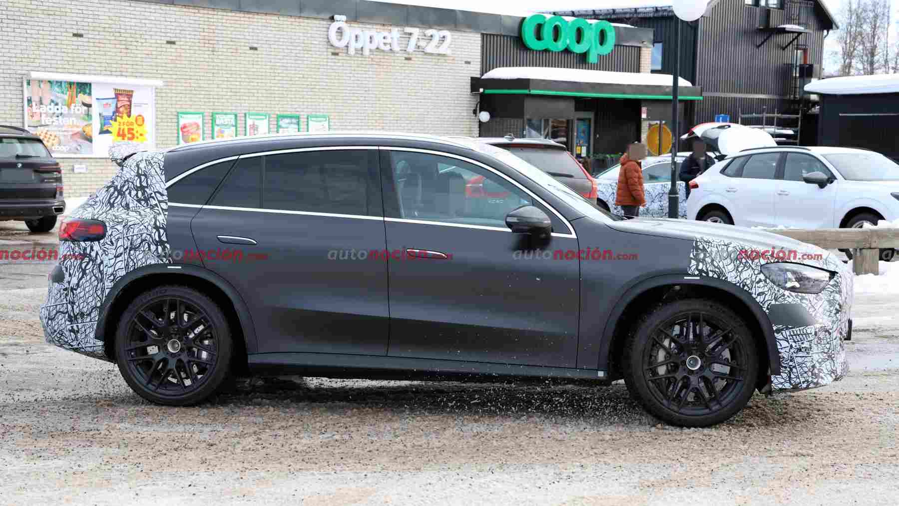 We didn’t manage to get any interior shots, but it would be strange if the overall layout differed greatly from the standard GLC EQ. AMG will likely just add a sports slant to it, which means you’ll still have access to the company’s beautiful, dash-length, “MBUX” display. If you look closely through the passenger window of the GLC EQ, you can just see the edge of the display curving downwards.