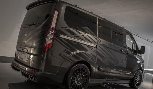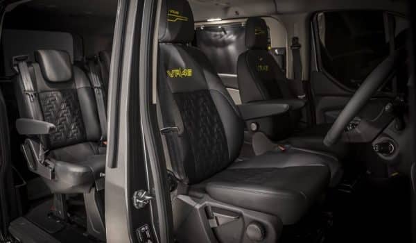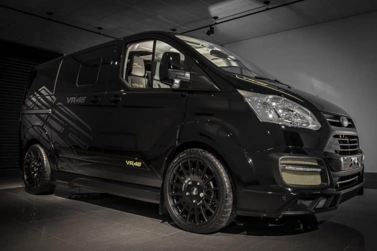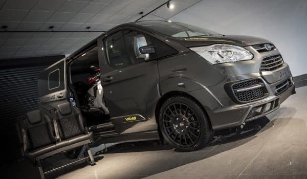 Pero el Transit Tourneo tampoco se queda atrás…con su mecánica 2.0 TDCI que desarrolla la respetable cifra de 170 CV podremos elegir entre la versión corta o larga, todo ello con el acabado Titanium que lo convierte en todo «un salón de competición» sobre ruedas. Lo que más destaca son, sin duda, sus llantas firmadas por la compañía OZ de 18 pulgadas en color negro, nuevos paragolpes tanto en el frontal como en la zaga, guardabarros y faldones que en conjunto le brindan una apariencia realmente atractiva. La firma de VR46 aparece por todos lados, desde el interior bordado en el cuero, hasta en pegatinas y vinilos sobre la pintura.