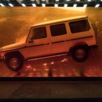 En su interior encontramos un 280 GE de 1979, toda una joya que refleja los inicios del actual Clase G. Para construir esta escultura fueron necesarios un total de 90 días de trabajo que dieron como resultado un cubo de 5,5 metros de largo, 2,55 metros de ancho y 3,1 metros de alto. Pero para más inri, este enorme cubo tuvo que ser transportado desde Hamburgo hasta Detroit con un especial cuidado en su complejo transporte. Pesa más de 40 toneladas y está compuesto de resina sintética.