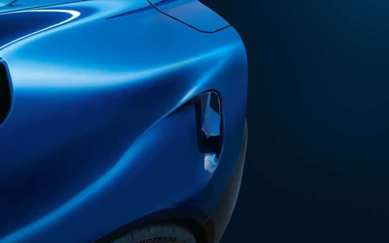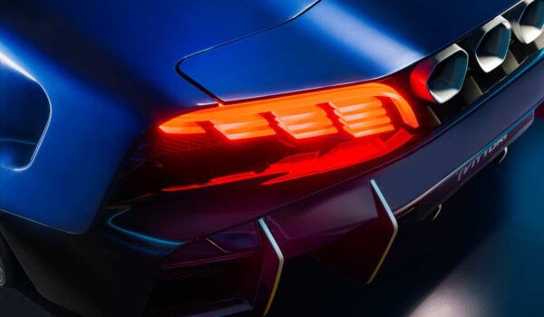 El equipo de diseño trabajó en crear una carrocería fluida y funcional, donde las superficies puras se integran naturalmente con las entradas y salidas de aire para un flujo aerodinámico óptimo. El vehículo incorpora un alerón trasero activo, que permite al conductor modificar la carga aerodinámica y la resistencia según el estilo de conducción o la ruta elegida.