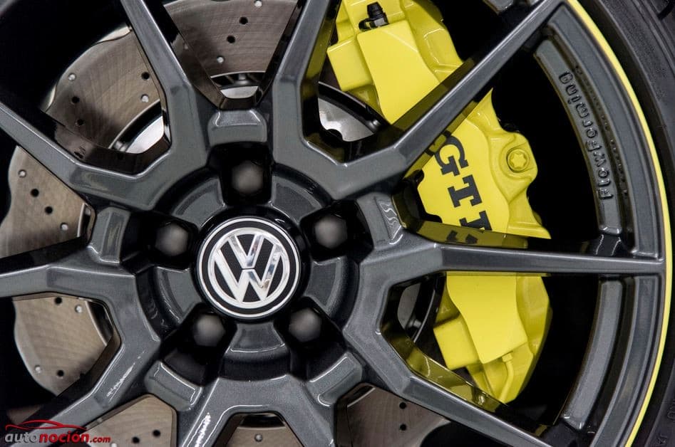 Mientras que el motor del GTI ha sido potenciado hasta los 395 cv, en la parte exterior se han decantado por un acabado bicolor en amarillo y gris Daytona. La parte delantera del coche está pintada en gris Daytona metalizado y la trasera en amarillo, de ahí lo de Dark and Shine.