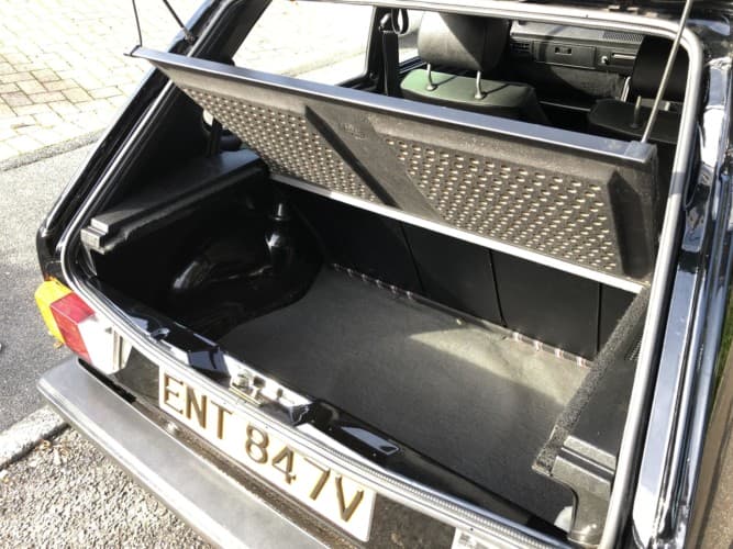 Acabado en negro con asientos en combinación de tela gris y negra, esta unidad cuenta con elementos muy raros como por ejemplo los pilotos traseros de pequeño tamaño -que luego fueron sustituidos-, la tapa de combustible sin bloqueo, el volante Wolfsburg de tres radios, las aletas genuinas de Wolfsburg, los cinturones de seguridad sin hebilla Toric T-76 y el pomo de la pelota de golf.